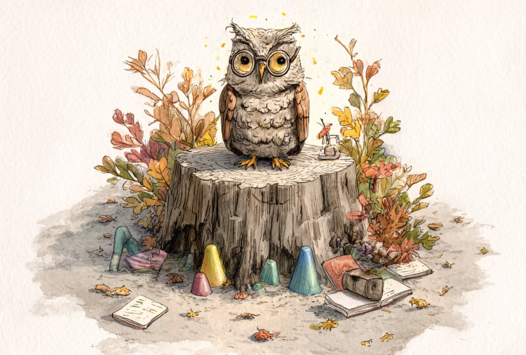 Ihr folgt dem glitzernden Pfad und kommt zu einer geheimnisvollen Lichtung. In der Mitte steht die weise Eule Ophelia auf einem alten Baumstumpf.