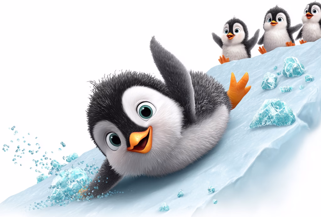 Pico lernte jeden Tag etwas Neues: Wie man watschelt, wie man Fische fängt, wie man auf dem Eis rutscht.